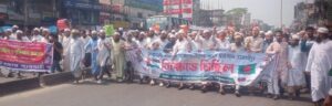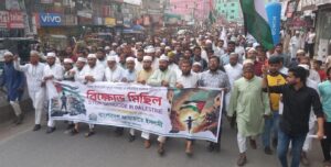 ফিলিস্তিনে গণহত্যার প্রতিবাদে গাজীপুরে প্রতিবাদে ও বিক্ষোভ মিছিল Abdul Hamid Abdul Hamid Khan প্রকাশিত: ৯:৩৭ অপরাহ্ণ, এপ্রিল ৭, ২০২৫ Oplus_131072 গাজীপুর প্রতিনিধিঃ ফিলিস্তিনে ইসরাইলি গণহত্যা ও বর্বরোচিত হামলার প্রতিবাদে গাজীপুর জেলা ও মহানগরীতে সোমবার ব্যাপক বিক্ষোভ হয়েছে। সোমবার বাদ আসর গাজীপুর কেন্দ্রীয় মসজিদের সামনে থেকে নগরীতে একটি বিক্ষোভ মিছিল বের করে মহানগর জামায়াতে ইসলামী। মিছিলে ইসরাইলি আগ্রাসনের নিন্দা, ফিলিস্তিনের নাগরিকদের ওপর চালানো গণহত্যার প্রতিবাদ ও স্বাধীন ফিলিস্তিনের দাবিতে বিভিন্ন শ্লোগানে প্রকম্পিত হয় নগরী। গাজীপুর মহানগর জামায়াতের আমির অধ্যাপক জামাল উদ্দিনের সভাপতিত্বে প্রতিবাদ সমাবেশে বক্তব্য রাখেন, মহানগর জামায়াতের নায়েবী আমির খায়রুল হাসান, মো: হোসেন আলী, মহানগর সেক্রেটারী আবু সাঈদ মোঃ ফারুক, ছাত্র-শিবিরের কেন্দ্রীয় সাবেক সভাপতি সালাউদ্দিন আইউবী, নুরুল আমিন, আজাহারুল ইসলাম, সাখাওয়াত হোসেন, অ্যাডভোকেট ছাদেকুজ্জামান খান প্রমুখ। অপরদিকে গাজায় ইসরায়েলি আগ্রাসনের প্রতিবাদে শিক্ষার্থীরা ‘নো-ওয়ার্ক নো-স্কুল’ কর্মসূচি পালনের অংশ হিসাবে সোমবার সকাল থেকেই ক্লাস-পরীক্ষা বর্জন করে বিক্ষোভ করেছেন গাজীপুরের বিভিন্ন শিক্ষা প্রতিষ্ঠানের শিক্ষার্থীরা। সকাল থেকেই গাজীপুরে বিভিন্ন সড়ক মহাসড়কে ছাত্র-জনতার স্লোগানে স্লোগানে উত্তাল হয়ে উঠে গাজীপুর। এতে সংহতি জানিয়েছেন শিক্ষক, কর্মকর্তা-কর্মচারীসহ একাধিক রাজনৈতিক ছাত্র সংগঠনসহ সাধারণ মানুষ। বেলা সাড়ে ১১টায় গাজীপুর মহানগরের চান্দনা চৌরাস্তায় ও বোর্ড বাজারে ছাত্র-জনতা ‘ফ্রম দা রিভার টু দা সি প্যালেস্টাইন উইল বি ফ্রি’, ‘ইস্ট টু ওয়েস্ট নো ফ্লো টু জায়োনিস্ট’, ‘ফিলিস্তিন মুক্তি পাক, ইসরায়েল নিপাত যাক’ ‘ইনকিলাব ইনকিলাব, আল আকসা জিন্দাবাদ’ ইত্যাদি স্লোগান দেন। শিক্ষার্থীরা বলেন, গাজায় নিরীহ শিশু, নারী এবং সাধারণ মানুষের ওপর যে নৃশংসতা চালানো হচ্ছে, তা শুধু একটি রাজনৈতিক সংকট নয়, এটি একটি চরম মানবিক ও নৈতিক সংকট। এমনকি যুদ্ধবিরতি লঙ্ঘন, মানবিক করিডোরে হামলা এবং জরুরি স্বাস্থ্যসেবা কাঠামো ধ্বংসের মতো সন্ত্রাসী কর্মকান্ড সভ্যতার চরম অবক্ষয়। আমরা ফিলিস্তিনের গাজা উপত্যকায় চলমান অমানবিক সহিংসতা, নির্বিচারে হত্যা, বোমাবর্ষণ, রাসায়নিক হামলা এবং মানবাধিকার লঙ্ঘনের বিরুদ্ধে গভীর উদ্বেগ ও তীর প্রতিবাদ জানাচ্ছি। বক্তারা বলেন, আমরা এই বর্বরতার বিরুদ্ধে সোচ্চার, সংগঠিত হতে এবং কার্যকর অবস্থান নিতে সর্বদা নৈতিকভাবে একতাবদ্ধ। শুধু সামাজিক যোগাযোগ মাধ্যমে প্রতিবাদ জানানোই যথেষ্ট নয়, এখন সময় এসেছে রাস্তায় দাঁড়াবার, কণ্ঠে কণ্ঠ মিলিয়ে মানবতার পক্ষে আওয়াজ তো