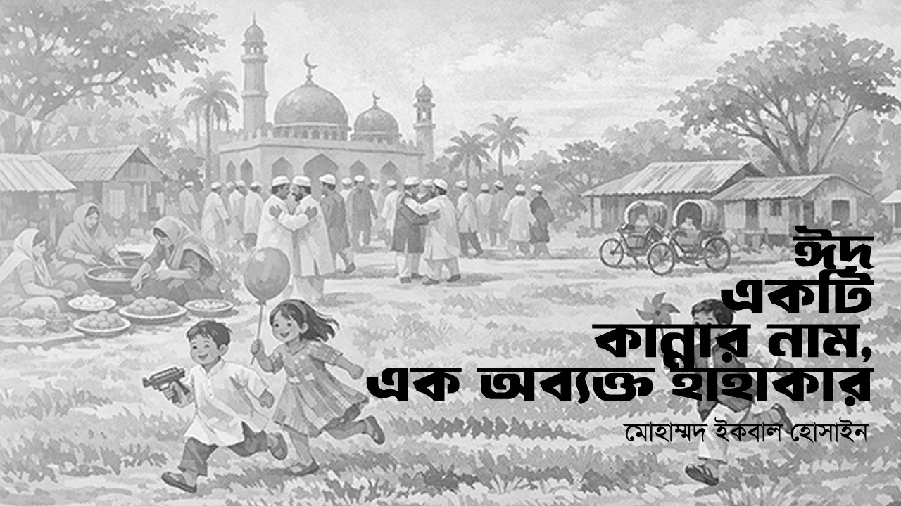 শাওয়ালের বাঁকা চাঁদ আকাশে উঠলে চারদিকে আনন্দের রোল পড়ে। আকাশ মেঘলা তারপরেও সন্ধ্যার পরে রেডিও-টেলিভিশনে বেজে ওঠে খুশির গান। চারদিকে আন্দদের আগমানী সুর সুর পরে যাবে। কিন্তু এই খুশির জোয়ারে কি সবাই ভাসতে পারে? কারো কাছে ঈদ মানে নতুন পোশাকের ঘ্রাণ, আর কারো কাছে ঈদ মানে বুকের ভেতর জমে থাকা এক দলা দীর্ঘশ্বাস। ঈদ তো বারবার ফিরে আসে তার নিয়ম মেনে, কিন্তু সবার জীবন কি একই নিয়মে চলে? বিষাদসিন্ধুর তীরে দাঁড়িয়ে থাকা মানুষের কাছে ঈদ মানে এক পশলা নোনা জল আর এক বুক হাহাকার।হে ঈদ, তুমি কেন বারবার ফিরে আসো? তুমি যখন দরজায় কড়া নাড়ো, তখন আনন্দ নয়, বরং এক অজানা আতঙ্ক দানা বাঁধে অনেকের মনে। যে বাবা তার সন্তানের জন্য একটি নতুন জামা কেনার সামর্থ্য রাখে না, তার কাছে তোমার আগমন মানেই লজ্জায় কুঁকড়ে যাওয়া। যে মা তার এতিম সন্তানের মুখে একটু ভালো খাবার তুলে দিতে পারে না, তার কাছে তোমার হাসি মানেই কলিজায় তপ্ত শলার আঘাত। তুমি কি জানো, তোমার আগমনে কত অভাবী মানুষের বুক কাঁপে? তারা তোমাকে আলিঙ্গন করতে চায় না, বরং পালাতে চায় তোমার এই জৌলুস থেকে।ঈদের আনন্দ পূর্ণতা পায় প্রিয়জনের উপস্থিতিতে। কিন্তু যাদের ঘর আজ শূন্য, যাদের প্রিয় মানুষটি মাটির নিচে চিরনিদ্রায় শায়িত, তাদের কাছে ঈদ মানেই স্মৃতির দহন। ঈদের নামাজ শেষে যখন সবাই কোলাকুলি করে, তখন সেই মানুষটি ভিড়ের মাঝেও একা। তার ঝাপসা চোখের সামনে ভেসে ওঠে গত বছরের সেই হাসিমুখটি, যা আজ শুধুই ছবি। জায়নামাজে বসে মোনাজাতের সময় যখন কান্নার নোনা জলে দাড়ি ভিজে যায়, তখন সেই হাহাকার আকাশের সীমানা ছাড়িয়ে যায়। তাদের জন্য ঈদ কোনো উৎসব নয়, বরং বিচ্ছেদের এক নিষ্ঠুর স্মারক।আজ যখন আমরা ঈদের আনন্দের কথা ভাবছি, তখন আমাদের চোখের সামনে ভেসে ওঠে ফিলিস্তিনের ধূলিসাৎ হয়ে যাওয়া জনপদ। সেখানে ঈদের চাঁদ আনন্দের বার্তা নিয়ে আসে না, আসে আরও একমুঠো বিভীষিকা নিয়ে। আকাশ সেখানে মেঘলা নয়, বারুদের ধোঁয়ায় আচ্ছন্ন। রেডিও-টেলিভিশনে খুশির গানের বদলে সেখানে প্রতিধ্বনিত হয় ড্রোন আর বোমার গর্জন। সেই জনপদে আজ কোনো শিশুর হাতে নতুন পোশাক নেই, আছে শুধুই কাফনের কাপড়। কোনো মায়ের কোলে আজ সন্তান নেই, আছে শুধুই হাড় জিরজিরে নিথর দেহ। ফিলিস্তিনের শিশুদের কাছে ঈদের আনন্দ মানে কী, তা তারা জানে না। তাদের শৈশব আজ ধ্বংসস্তূপের নিচে চাপা পড়ে গেছে। স্বজন হারানো নারীদের আর্তনাদে আজ আকাশ-বাতাস ভারী। তাদের জীবনে ঈদ নেই, আছে শুধুই বেঁচে থাকার সংগ্রাম আর হারানো দিনের স্মৃতি। শহরের আলোকসজ্জা আর আতশবাজির নিচে চাপা পড়ে যায় হাজারো মানুষের নীরব কান্না। ফুটপাতে শুয়ে থাকা শিশুটি যখন দেখে তার বয়সী কেউ দামি গাড়িতে চড়ে ঈদের আনন্দ করছে, তখন তার নিষ্পাপ মনে যে ক্